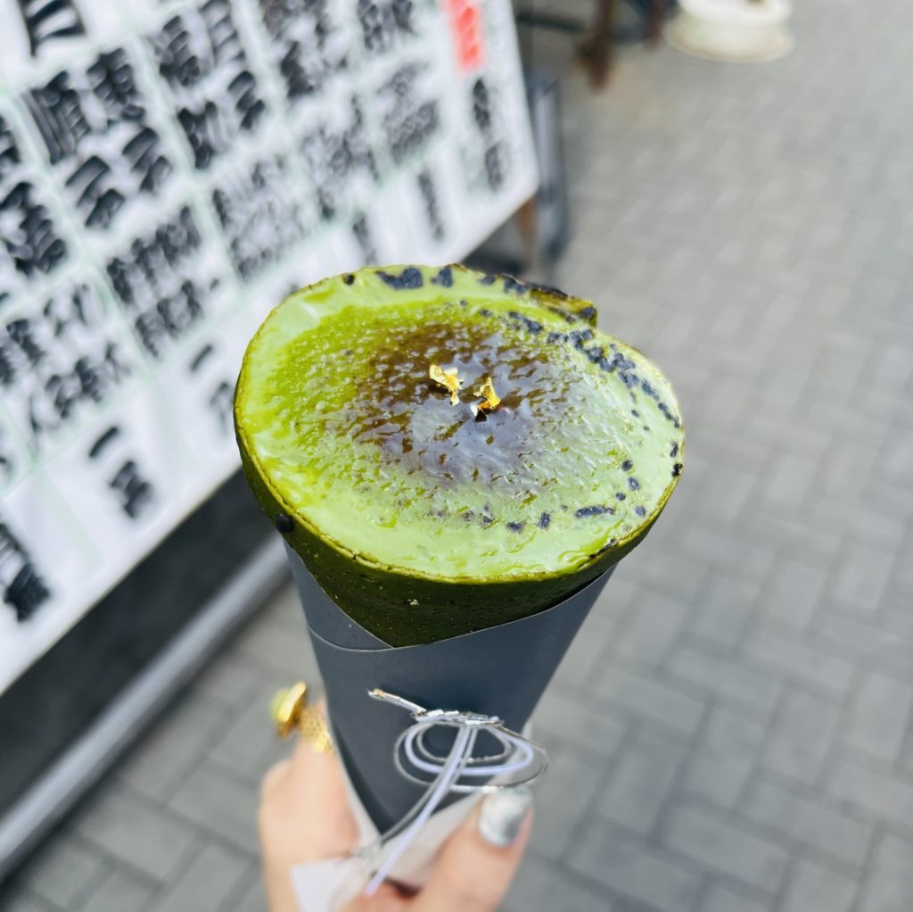 こちらも人気店のようでかなり並びましたが、抹茶がかなり濃厚でした。中のアイスクリームは少ないかな?と感じましたが、ブリュレ発祥の地であるフランス生まれの彼も美味しく頂いておりました。